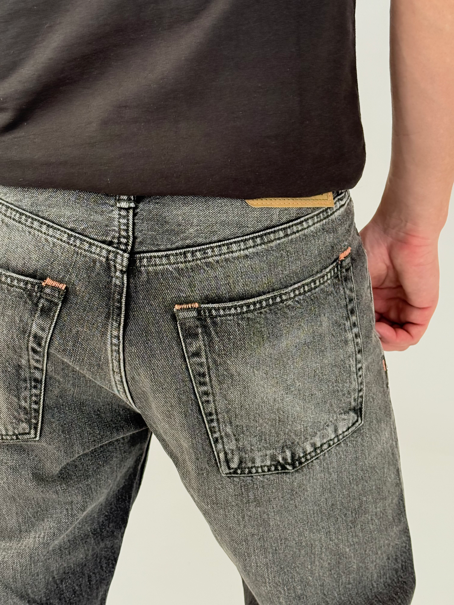עשוי דנים כותנה רכה בגוון שחור־אפור עם מראה חלק וללא שטיפה מודגשת, ליצירת לוק נקי ויומיומי.